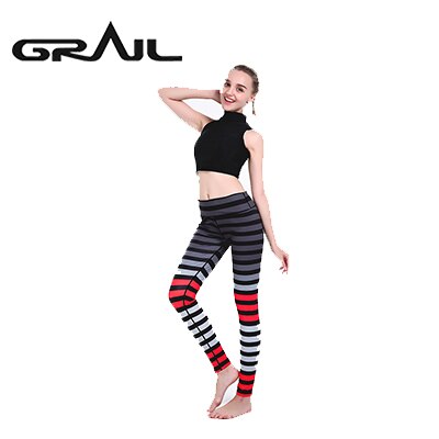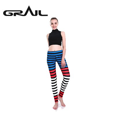 GRAIL Outdoor Woman Stripe Leggings Digital Printed Tights Trousers Stripe Legging Slim Mid Waist Legins Fitness Clothes