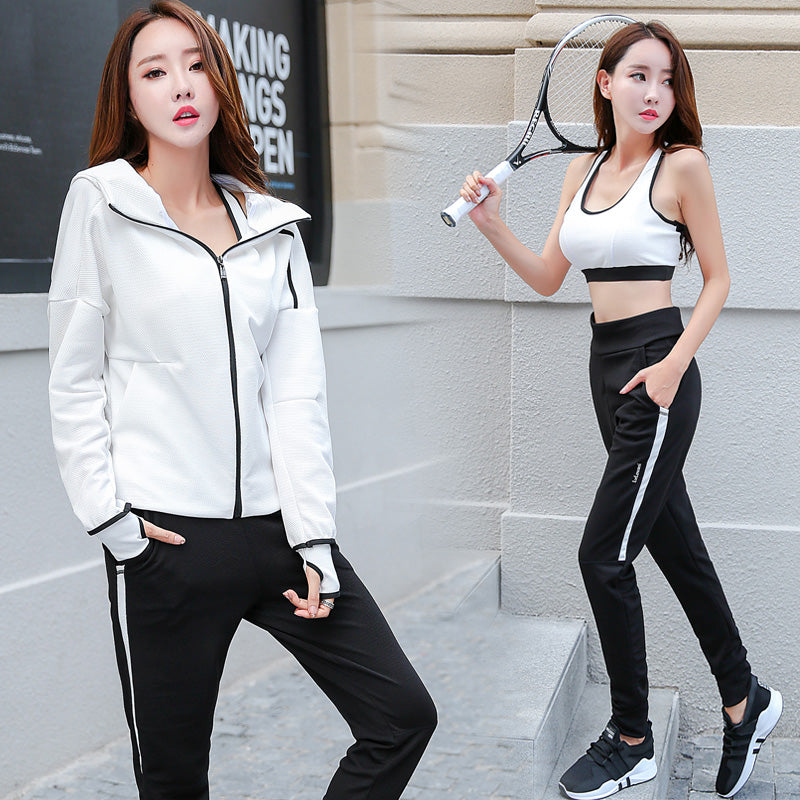 Women sports: Long Sleeve Jacket+Bra+Sport Leggings
