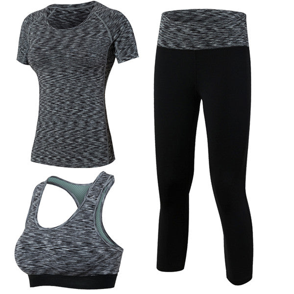 Women Yoga 3pcs Brand Sport Tight Short Sleeve Shirt Bra Pants Fitness Leggings Running Gym Sport Suit Sport Top Green Yoga Set